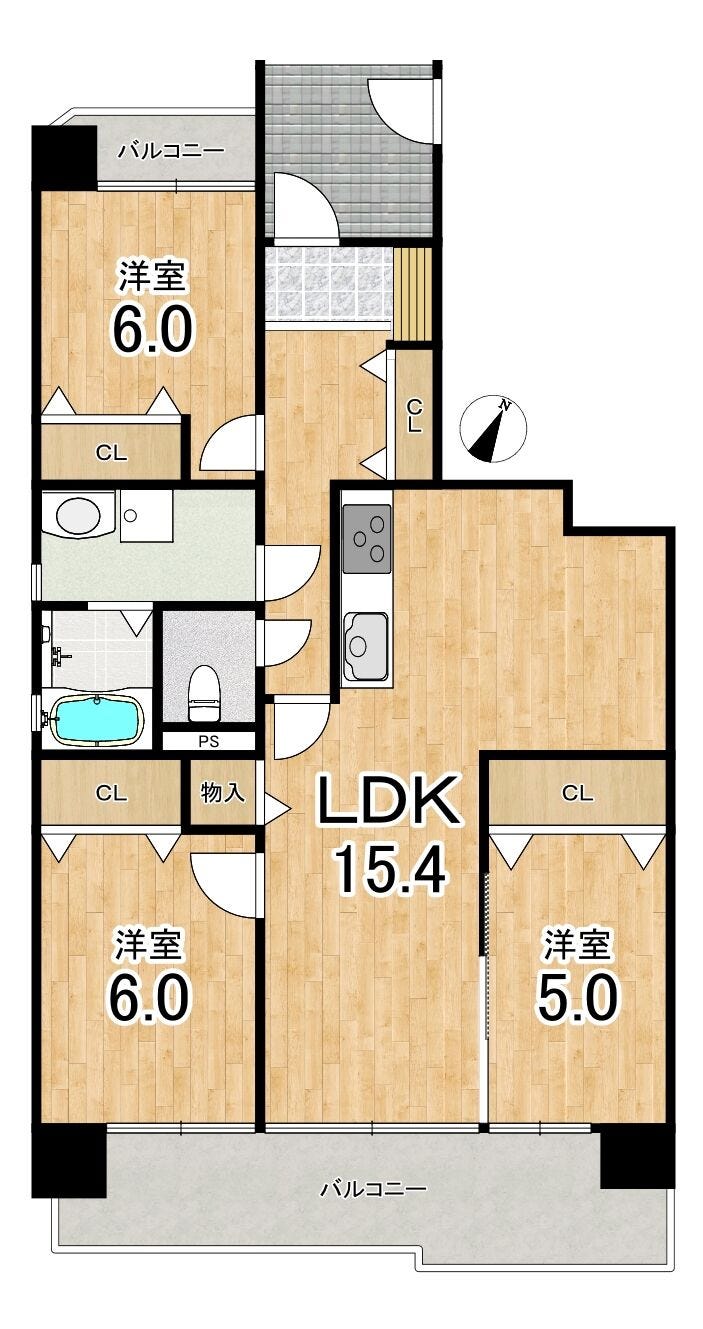 主要採光 南東向 バルコニー 南東向17.63㎡